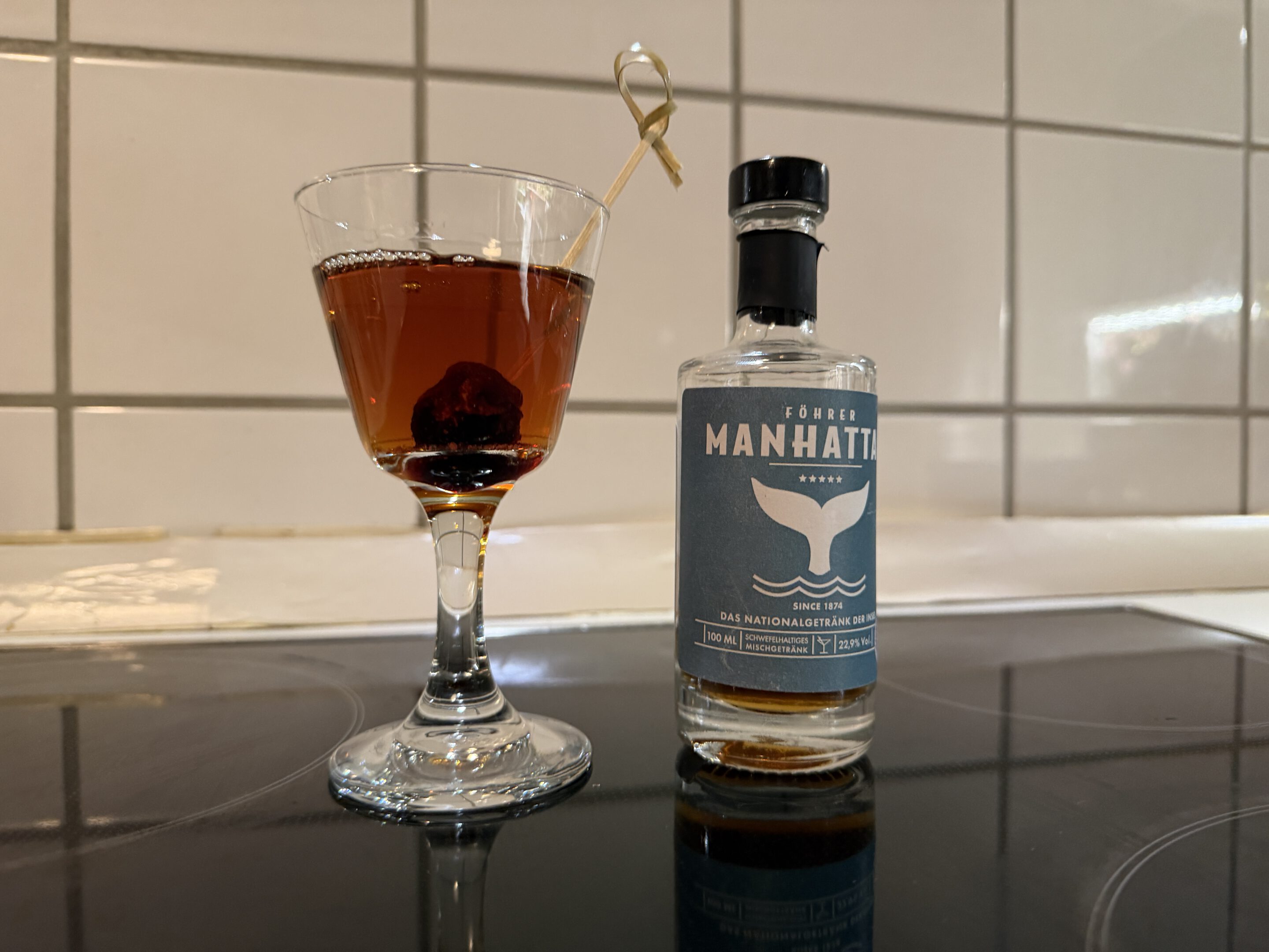 Während anderswo wieder über „Batching“ diskutiert wird, steht der Föhrer Manhattan seit Jahrzehnten fertig gemixt im Kühlschrank. Kein Eis, kein Rühren, kein Stress. Einfach einschenken, wenn Besuch kommt (oder wenn keiner kommt).