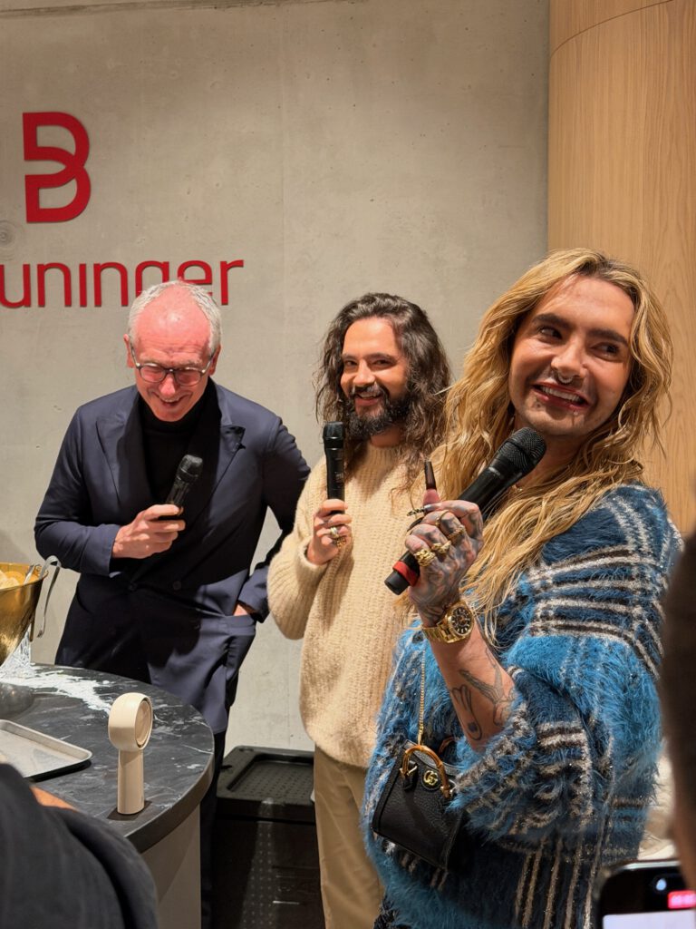Empfangen wurde man nicht nur mit Drinks, sondern auch mit einer Mischung aus Glamour und Vertrautheit: Influencer, Szene-Gesichter, Gastro-Menschen, ein paar vertraute Agenturmenschen – und zwischendrin Leute von Meta, Netflix, Youtuber, die das Ganze sichtbar begleitet haben. Breuninger-Hausherr Henning Rieken begrüßte zum Abend. Hinzu kam ein kleines Kamerateam von Netflix – denn ja, das Event landet eventuell auch in der nächsten Staffel von „Kaulitz & Kaulitz“. Staffel 3 lässt grüßen.