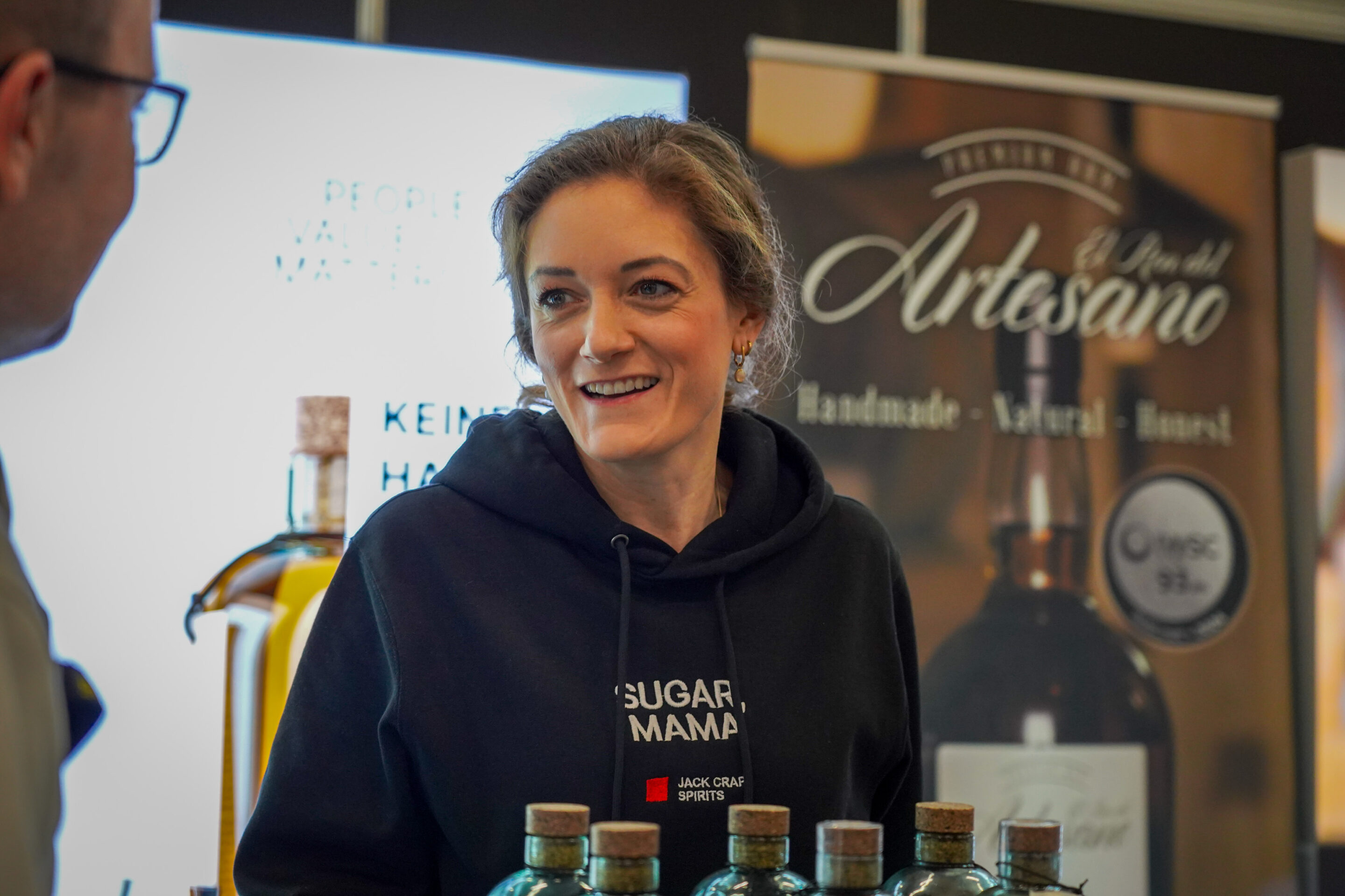Neben ihren eigenen Abfüllungen vertreibt Vorster mittlerweile auch andere Marken: Ron Dos Mares aus Panama, den französischen Kräuterlikör Pagès, El Ron del Artesano und Honey Badger. Ursprünglich wollte sie nur ihre eigene Marke anbieten – „das ist einfacher für den Konsumenten“. Aber wenn ein Händler auf der Messe nach etwas anderem sucht, kann sie jetzt aus einem breiteren Portfolio schöpfen. Das macht die Sache komplizierter, aber auch stabiler.