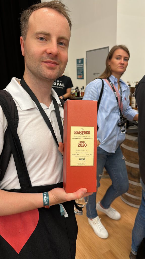 Und schließlich der Hampden-Stand. Da hält man natürlich an. Ich hatte zugegeben war nicht so große Erwartungen, man kennt das ja fast alles. Doch hier wurde gut aufgefahren: Neben den Standardabfüllungen auch drei verschiedene “Great House”-Editionen, der Hampden Maverick 2024 (anlässlich der Geburt des Sohnes) und die Special Edition 2020 exklusiv für die Messe. Letztere ist fünf Jahre alt, fruchtig, sauber, trotzdem mit Tiefe. Und ich muss sagen: Einer der besten Hampdens seit Langem. Und ja, da wanderte eine Flasche in die Tasche für 125 Euro.