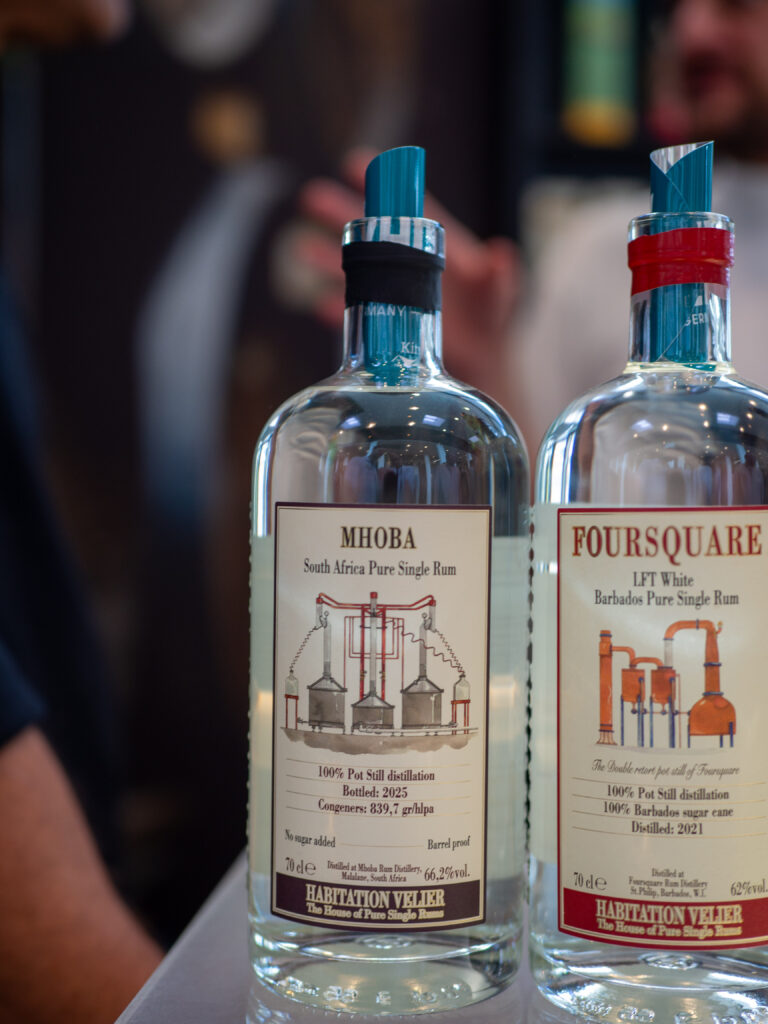 Dann kam der Mhoba Rum am Stand von Velier – 66,2 Prozent, gebrannt aus der südafrikanischen Zuckerrohrsorte N49 auf Pot Stills. Und im Ergebnis so weich, dass man ihm 10 Prozent weniger geglaubt hätte. Auffallend war die schöne Textur, beinahe ölig-cremig, in der Nase leicht vergoren, eben dieser typische „Mhoba-Vibe“, den man mögen muss – wir mochten ihn. Ein Brett für 75 Euro.